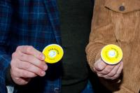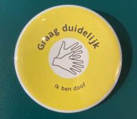Met deze button kunnen dove mensen aangeven dat ze niet kunnen horen. Door de mondmaskers kunnen ze niet meer liplezen, dus een button kan veel duidelijk maken.
